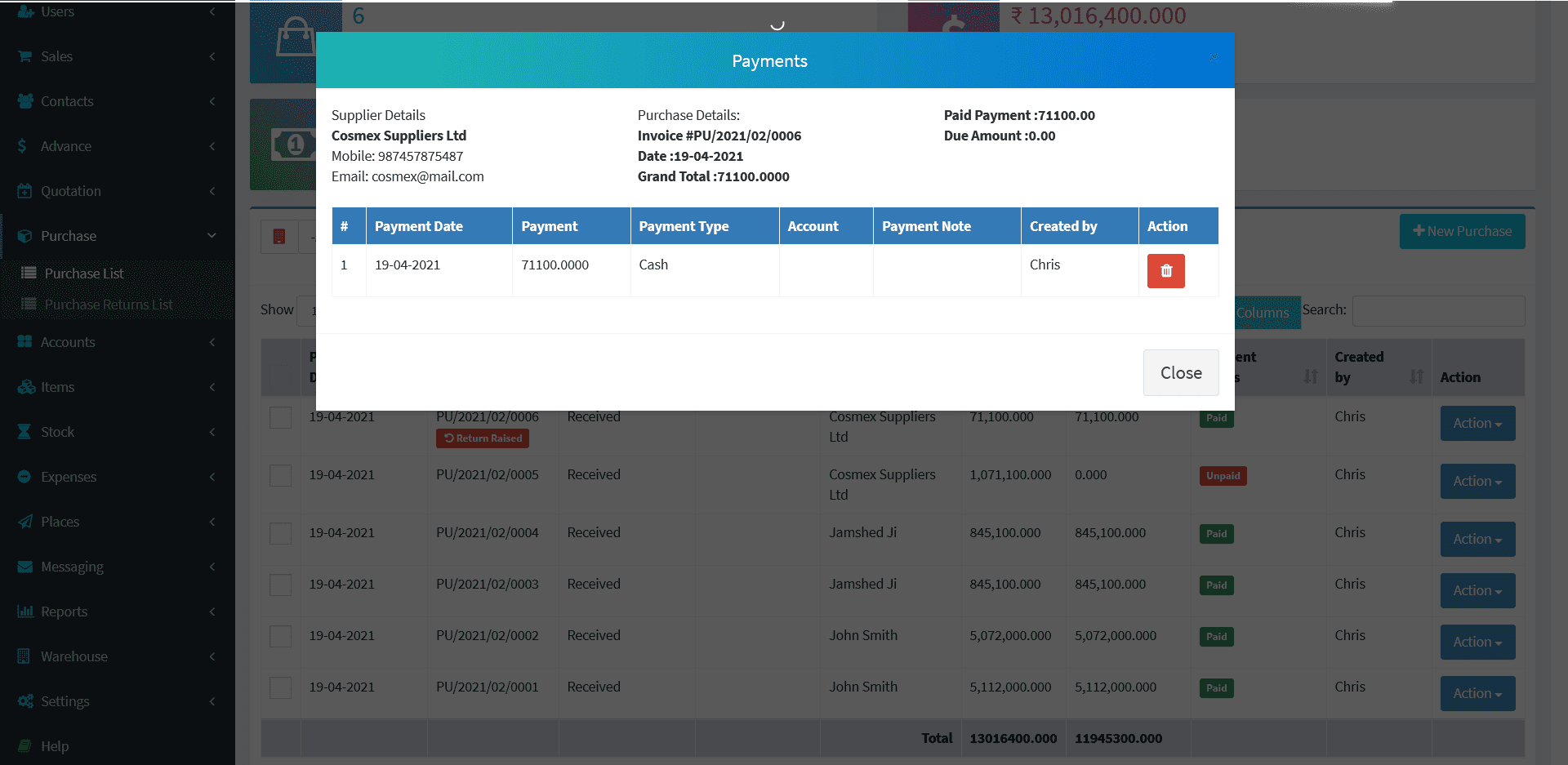 Suppliers -> Suppliers List -> Action Button -> Due Payments