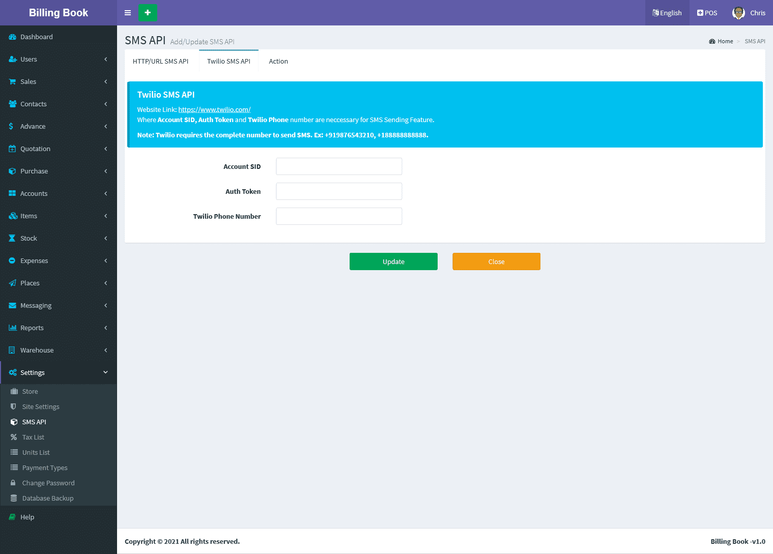 Twilio SMS API :